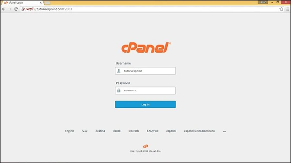 If you have already updated your Nameservers for your domain, then you may use your domain for directly accessing cPanel by your domain. You may find cPanel login screen using your domain by typing the following into the address bar −